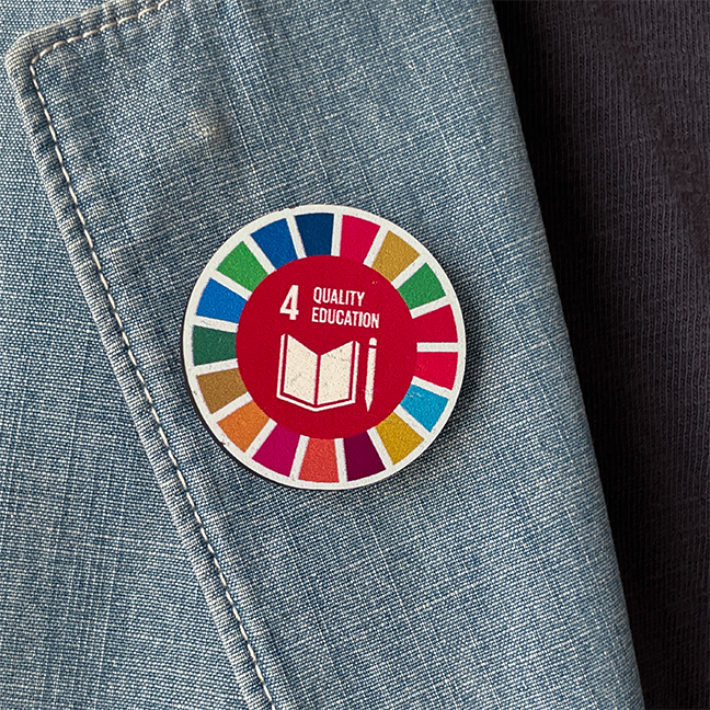 Discover our exclusive line of SDGs pins made with sustainable wood.