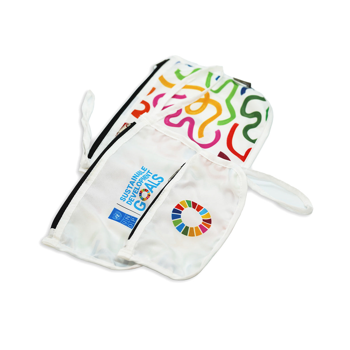 These SDGs travel pouches are versatile and eco- friendly. Designed for anyone who wants to stay organized and sustainable at the same time, each pouch can hold various travel essentials, from toiletries and makeup to electronics and stationery. So now you can pack your perfect accessories for whenever you’re on the go!