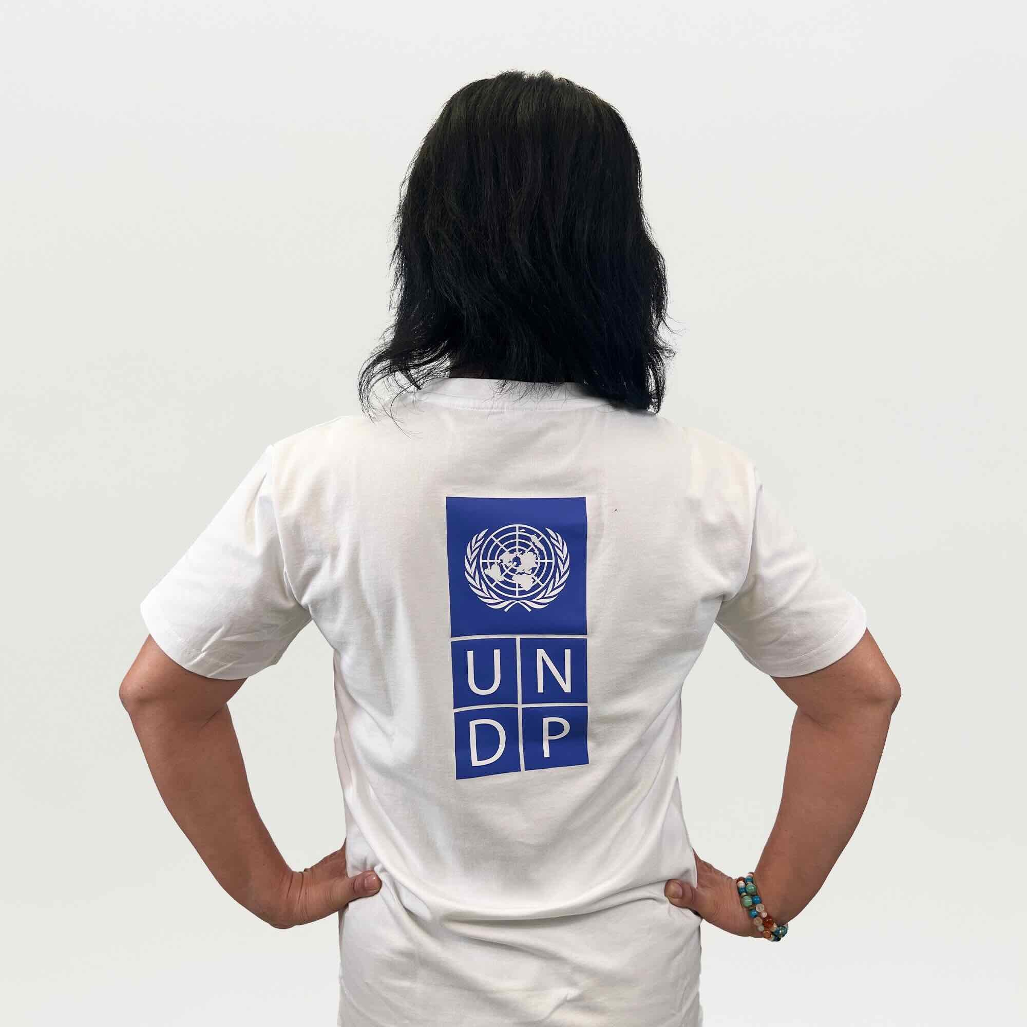 This versatile t-shirt is available in two options: blue fabric with a white logo, and white fabric with a blue logo, allowing you to choose the one that best suits your style. It proudly features either the UNDP or the PNUD logo, symbolizing your commitment to global development.